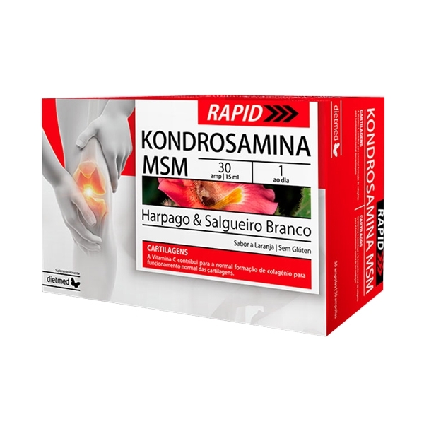 KONDROSAMINA MSM RAPID, da Dietmed é um suplemento alimentar especificamente desenvolvido para beneficiar as cartilagens, intervindo positivamente nas respectivas funções de mobilidade, flexibilidade e suporte. Fornece os elementos essenciais que regeneram e melhoram a estrutura das cartilagens danificadas, tornando as articulações “mais saudáveis”.